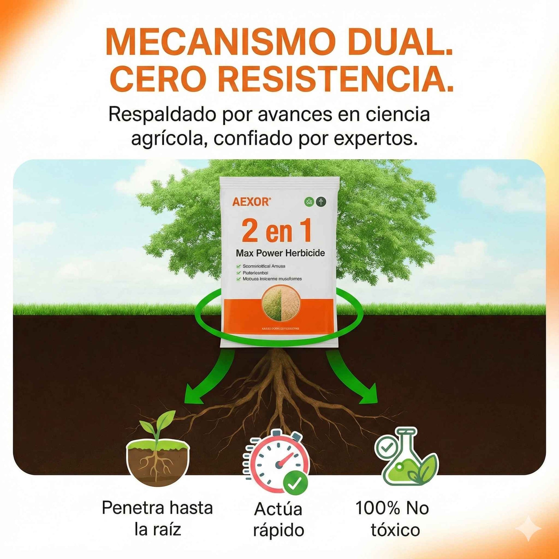 ✅ Protección de resistencia: Las malezas no pueden resistir ambos mecanismos simultáneamente.