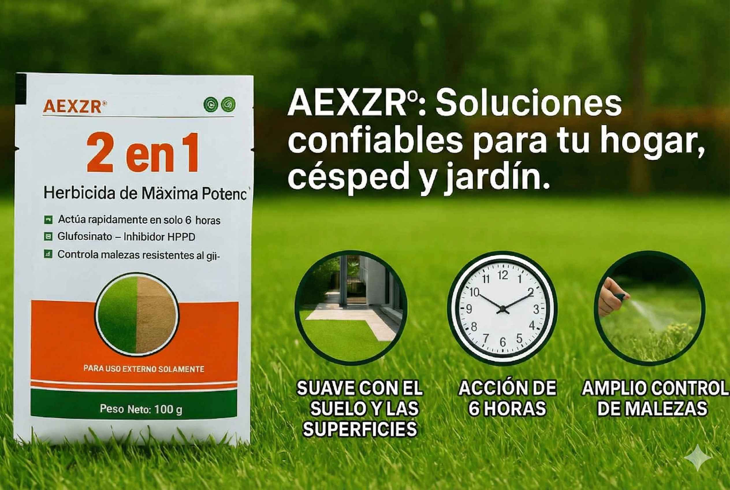 Presentamos la revolucionaria tecnología de doble acción: herbicida AEXZR® 2 en 1 de máxima potencia