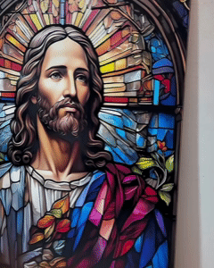 El arte mural de Jesucristo llena tus espacios de tranquilidad, protección y fe, creando un ambiente lleno de luz espiritual 🙏