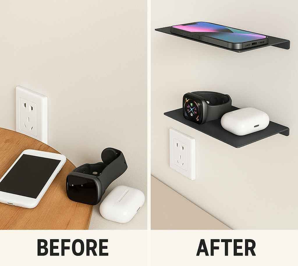 💬 Ambos 🌿 Estos estantes no solo eliminan el desorden: también aportan un toque moderno y minimalista. Puedes usarlos para mostrar tus gadgets, velas, plantas pequeñas o marcos decorativos.